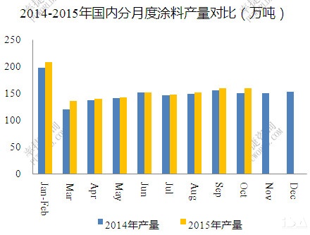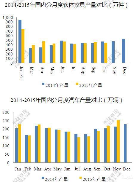 2015年国内经济大环境不理想,TDI主要下游软体家具前十月同比仅增长0.15%,而汽车行业在11月份的大幅增长带动下,前十一月亦仅增长1.75%。涂料方面,国内全部涂料总计仅增长3.5%,不过其中聚氨酯涂料或有更高些增长,然基数较小,对TDI总体消费难有较大改观。