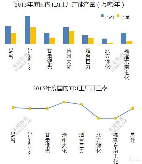 2015年国内TDI工厂开工率相对偏低,产量明显缩量,需求制约,整年看来,厂家挺价救市效果乏力。